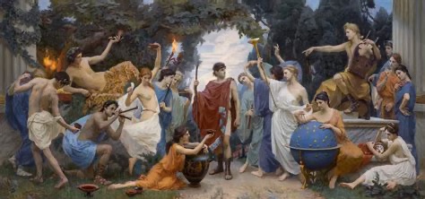 Pintura de pintura “Apolo y Dionisio” de Leonid Ilyukhin,Pintura de «Apolo y Dionosio», que ofrece una interpretación profunda de la dualidad, y de cómo estas fuerzas contrapuestas coexisten y se equilibran en la experiencia humana.