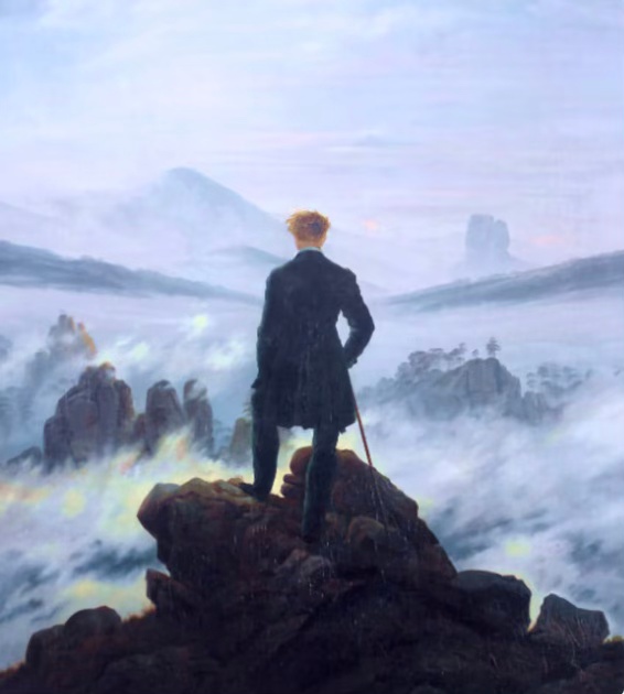 El caminante sobre el mar de niebla.Pintura de Caspar Friedrich,